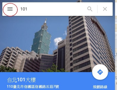 1. 首先,先搜尋到Google Map你想要分享的地點,然後按一下左上方的選單圖示。