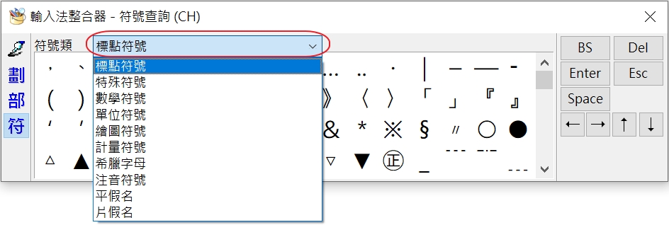 1. 在中文輸入法中,同時按住鍵盤上「Ctrl」+「Alt」+「,」,就會出現符號查詢表可供選取符號。