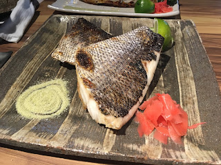 最後一道是烤魚,這個要依當天現場有甚麼魚來決定。我忘記這條是什麼魚了,只記得當時跟店員說不要魚刺多的那種;價位不便宜,但可以做一魚兩吃。魚肉的部分用烤的,味道很讚;魚頭跟魚尾拿來煮湯,不過湯就滿普通的了。