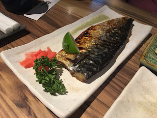 第六道菜是鹽烤鯖魚,這是朋友極力推薦的下酒料理,結果因為太好吃,酒都還沒喝到,整條魚就被我們啃光了,只好再點一份=.=”