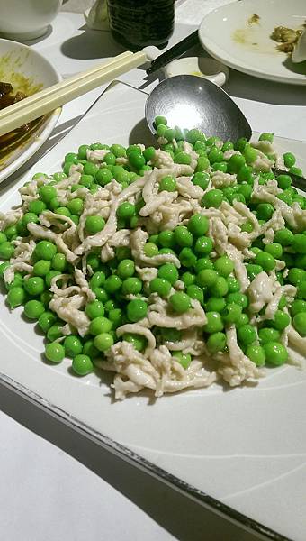 ↓雞絲豌豆。很少吃到豌豆這麼脆的,雞絲也很滑溜,口味清爽,喜歡吃豆子的人一定很難抗拒。這也算是一道下飯的好料理。