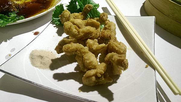 ↓椒鹽田雞。田雞肉質飽滿,雖然沒經過醃製但是因為新鮮所以感覺吃起來很有彈性,加上一點點的胡椒鹽就非常對味。這應該就是為甚麼大廚常說好的食材不需要經過太多的處理,就能夠展現出它的美味。