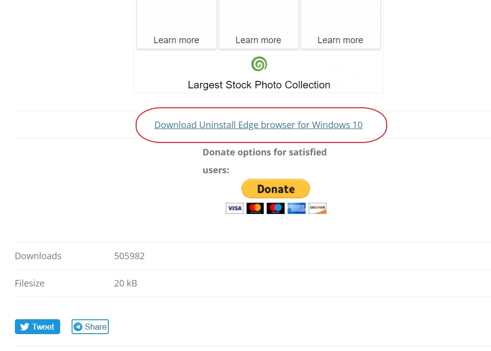 2. 開啟瀏覽器,連到「https://winaero.com/download.php?view.1835」,點選「Download Uninstall Edge browser for Windows 10」將檔案下載回來。