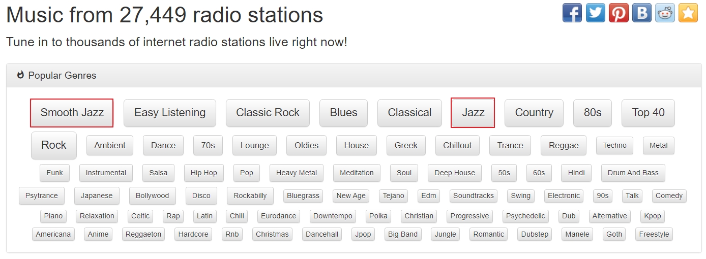 說明:Internet Radio這個線上電台幾乎什麼樣類型的音樂都有,當然也包括爵士樂。它之所以成為我三個最常聽的線上爵士樂電台,是因為有時候突然想轉換心情,隔壁就有老歌、R&B、快歌等分類,實在很方便。