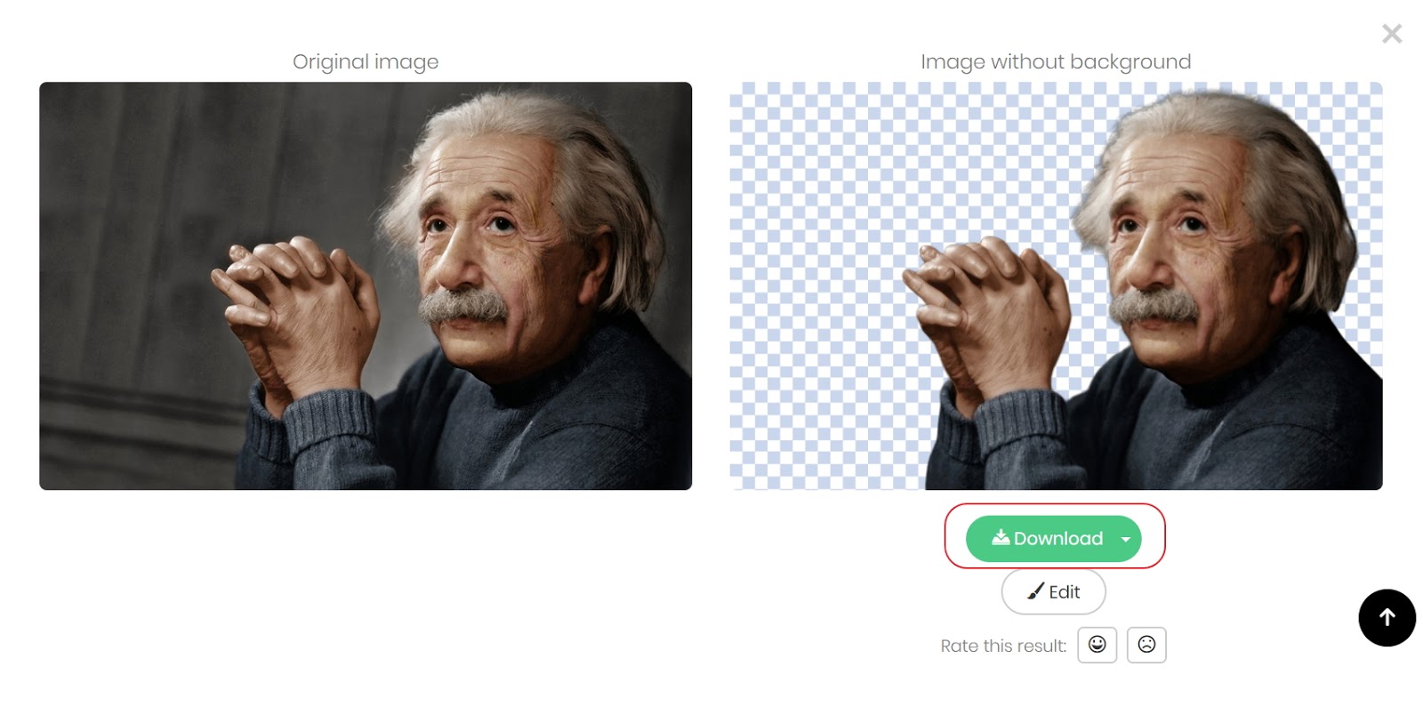 3. 圖片上傳後不久你就會看到這個畫面,可以預覽去背前與去背後的效果。沒問題的話按下「Download」就能把去背完成的圖片下載回來,因為這是免費版的操作,所以圖片寬度會限制在640px。