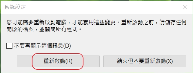 3. 直接按下「重新啟動」電腦就會重新開機。