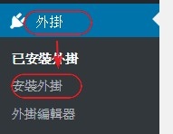 1. 現在,進入Wordpress後台,按一下「外掛」,當下拉選單出現後再按一下「安裝外掛」。